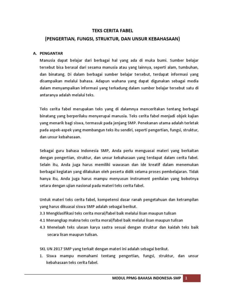 Materi Cerita Fabel Kelas 7 : Rangkuman Materi Bahasa Indonesia Lengkap Kelas 7 Smp Mts / Soal bahasa indonesia smp kelas 7 soal pilihan ganda bacalah teks berikut.